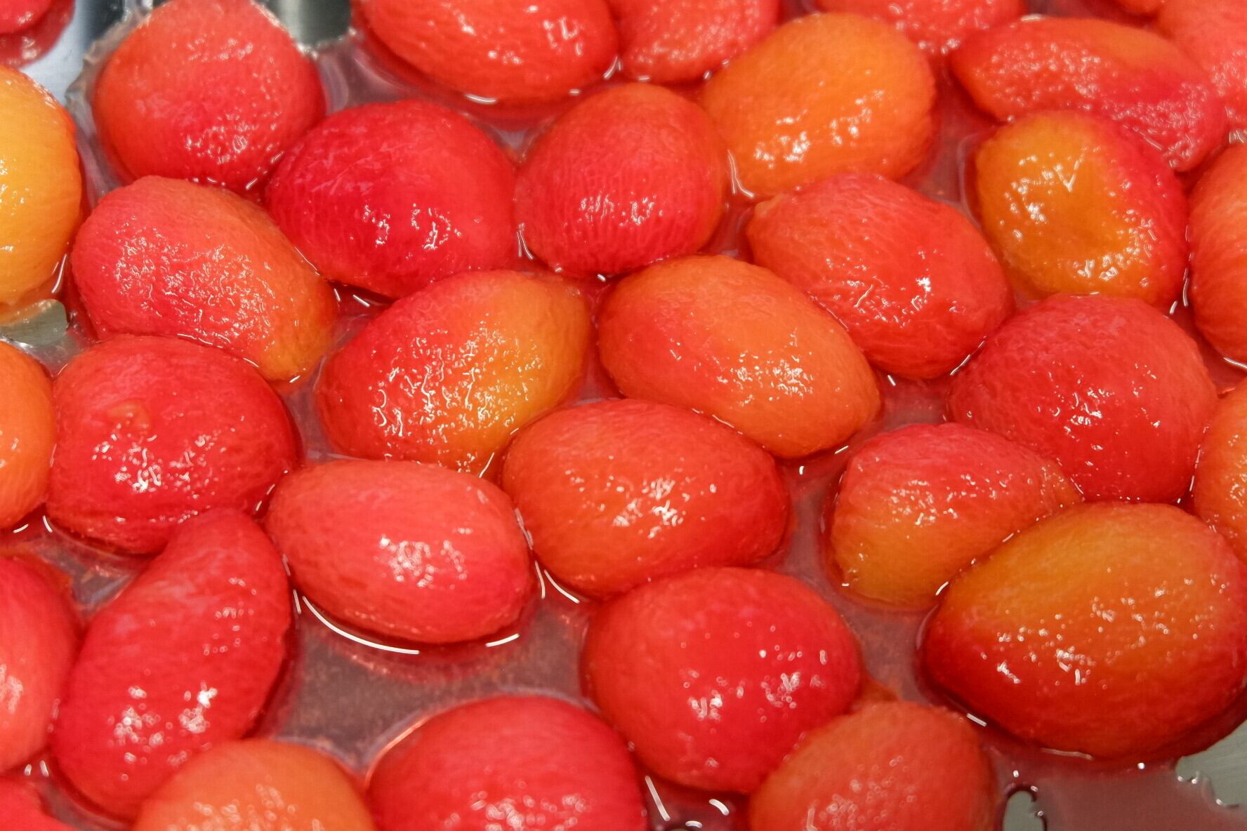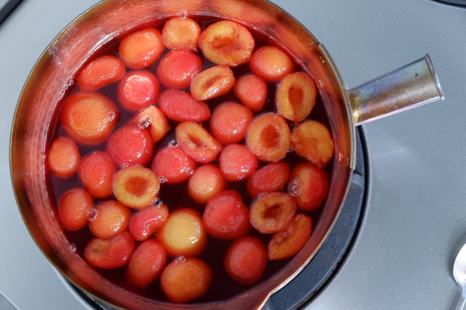それとはまた別に作っておいたすももコンポートを合わせて、一瓶につき3、4切れほど入れました。