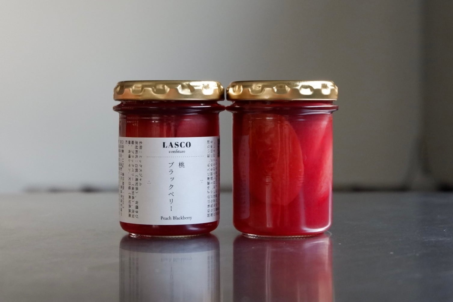高知で初夏に少しだけ出回る白桃『千代姫』を主役に、ブラックベリーを合わせたコンフィチュールです。