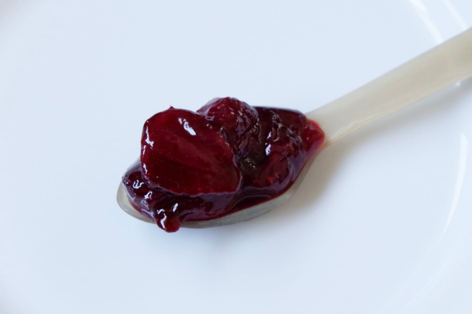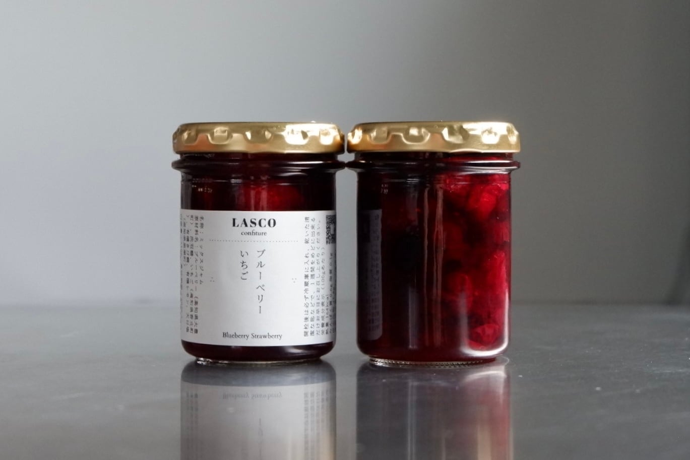 大豊町の山奥の畑で自家栽培しているブルーベリーに、香北町産の無農薬いちご『すず』を合わせたコンフィチュール。