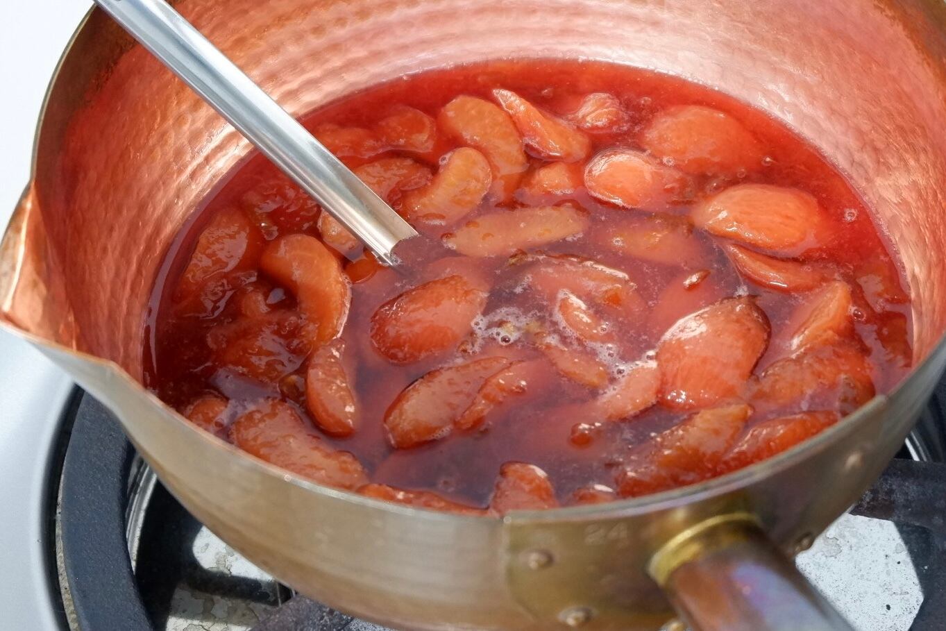 お山のすももを漬けた果実酒を仕上げに加え、やさしい香りを重ねました。
