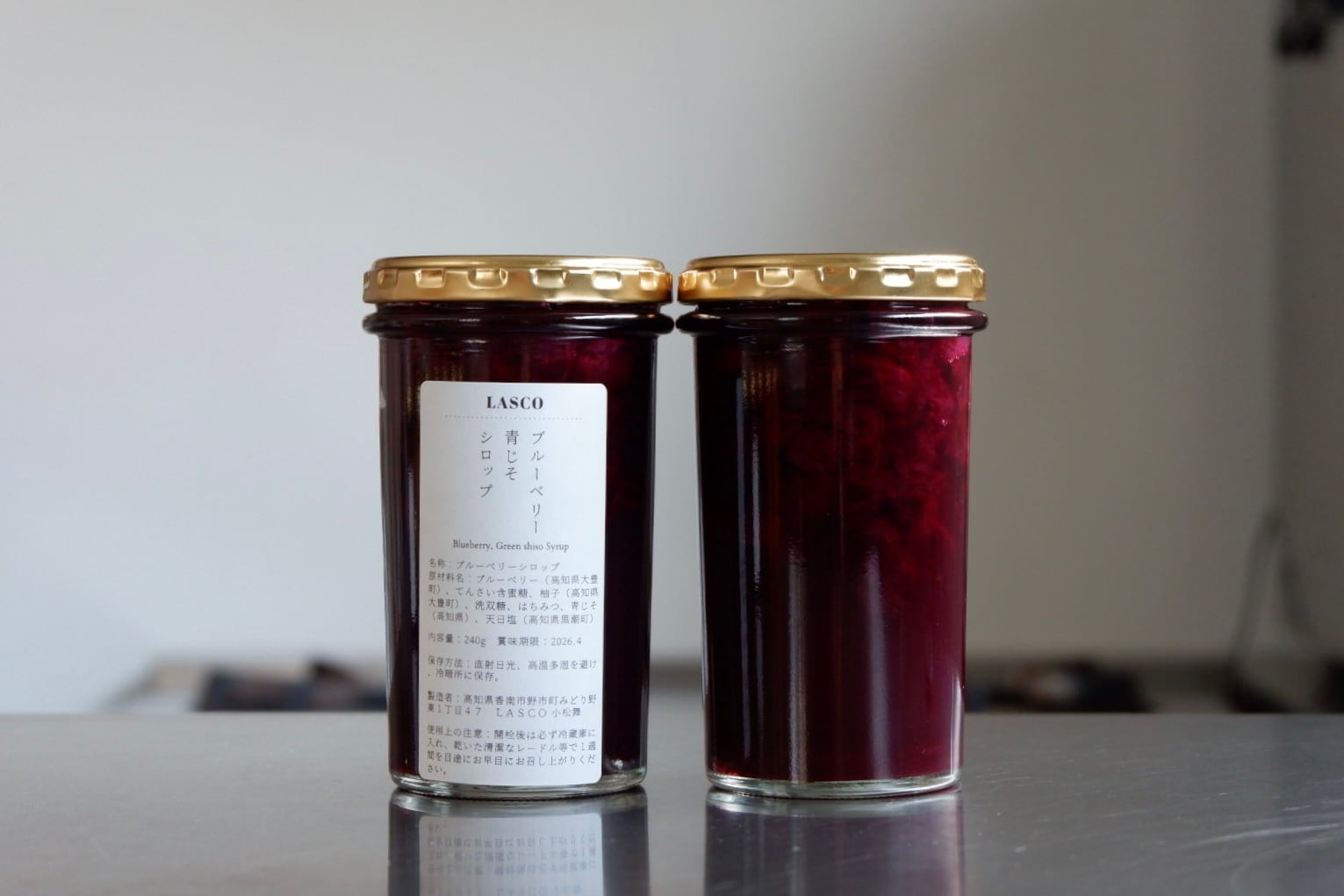 青じそとゆず果汁で作ったさっぱりとしたシロップに、無農薬・無施肥で育てたブルーベリーの果肉をたっぷり合わせたシロップです。