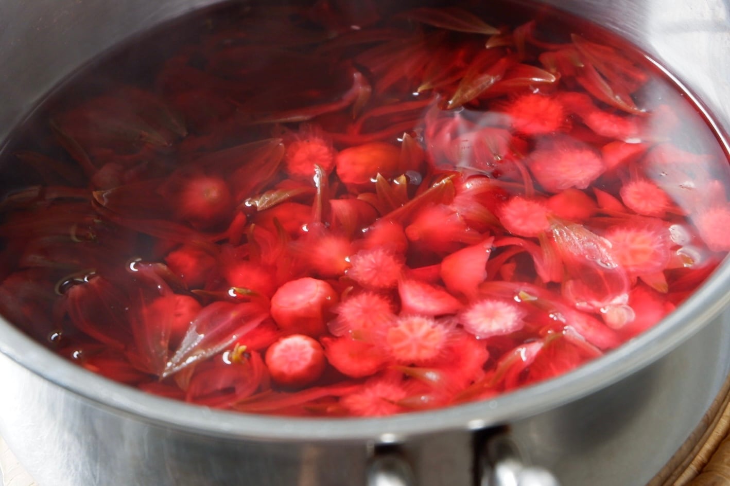 ローゼルのシロップは、ベリー系と馴染みがよいキリッとした酸味のある風味です。