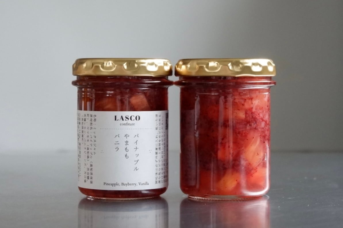 夜須町のパイナップルを主役に、高知の県花でもあるヤマモモを合わせたコンフィチュールです。